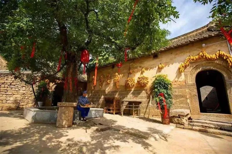 人們進(jìn)入寨門(mén),走在青石板鋪就的老街上,映入眼簾的是一面面介紹古村的大彩旗。街道兩旁綠化樹(shù)木整整齊齊,民居屋檐下掛著大紅的燈籠、金黃的玉米、火紅的辣椒、白色的蒜瓣,透著濃郁的生活氣息和勃勃生機(jī)。石磨、打鐵鋪、古樓、古樹(shù)等人文景觀,讓這個(gè)山村散發(fā)著濃郁的歷史氣息!