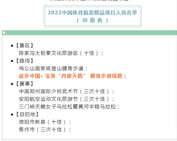 “2022中國體育旅游精品項(xiàng)目”入選名單發(fā)布!就讲街袊·寶泉“丹崖天路”健身步道線路】入選2022中國體育旅游精品項(xiàng)目!