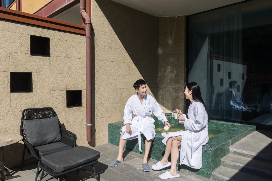 寒冬天地,身心終有去向,在溫泉房?jī)?nèi),將身心浸泡暖池,聆聽(tīng)自然物語(yǔ),暫別一切繁瑣,奔赴一場(chǎng)質(zhì)樸的浪漫。仙門(mén)山度假酒店敬愛(ài)這自然的空明與質(zhì)樸,池底用天然的石塊來(lái)構(gòu)建,正是白居易詩(shī)句中“青石一兩片”的青石,在感受溫泉的同時(shí),可體驗(yàn)自然的詩(shī)意。
