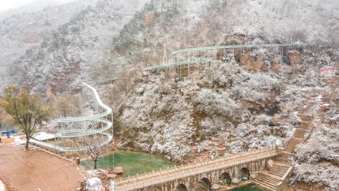 全長(zhǎng)1200米,盤(pán)亙?cè)谏钌矫芰掷铮杩斩,盤(pán)旋而下。3分鐘快速下山,享受速度與激情的酣暢淋漓!