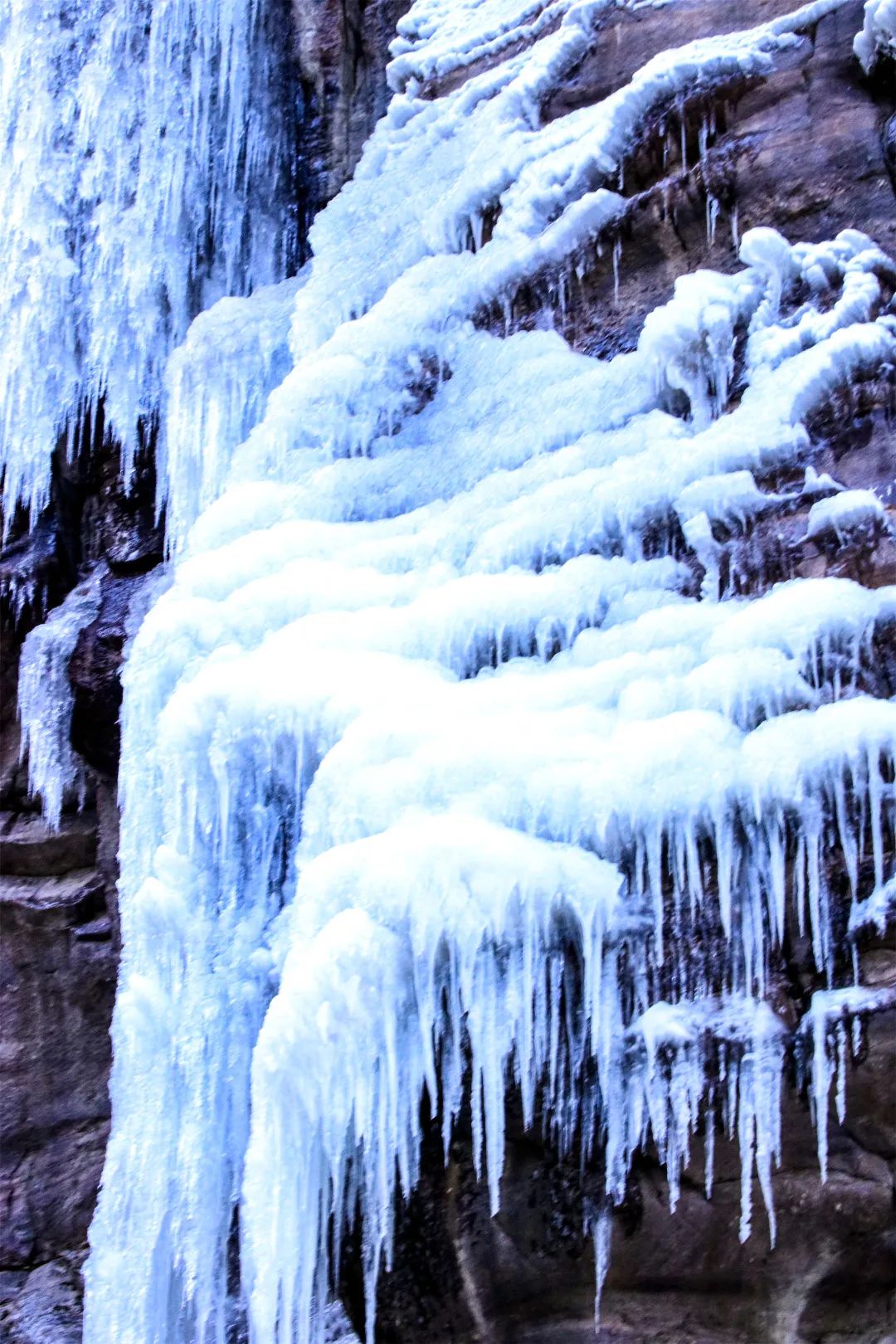 冰掛的形狀千奇百怪,有的像鐘乳石,有的像虬龍,在陽(yáng)光下閃著冰晶,更像珠簾翠幕,瑤樹(shù)琪花,把仙門(mén)山裝點(diǎn)的如人間仙境,這才是北國(guó)風(fēng)光應(yīng)有的風(fēng)情。