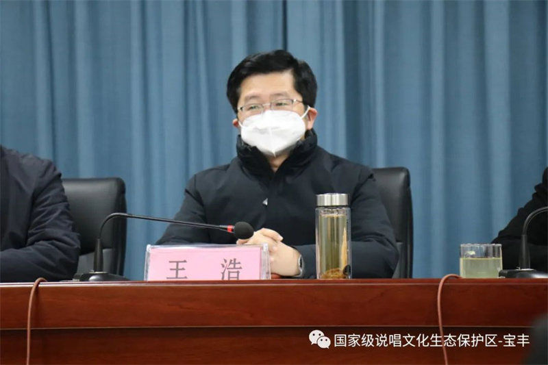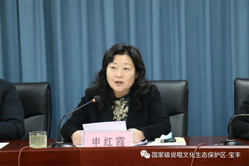 寶豐縣縣委常委、宣傳部部長、縣政府副縣長王浩,平頂山說唱文化(寶豐)生態(tài)保護(hù)發(fā)展中心黨組書記、主任申紅霞,寶豐縣政府黨組成員、縣政府副縣長孫志剛,平頂山說唱文化(寶豐)生態(tài)保護(hù)發(fā)展中心黨組成員、副主任楊淑禎,平頂山說唱文化(寶豐)生態(tài)保護(hù)發(fā)展中心黨組成員、副主任、縣委辦公室常務(wù)副主任潘廷韜,及其他有關(guān)單位負(fù)責(zé)同志參加會(huì)議。申紅霞主持會(huì)議。