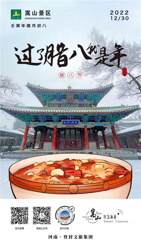 熱粥馨香辭舊月,冬暖人心迎新春!新年來臨之際,嵩山景區(qū)明日開始免票啦,同時我們也準(zhǔn)備了豐富多樣的元旦八大主題活動,期待您在元旦佳節(jié)親臨體驗!