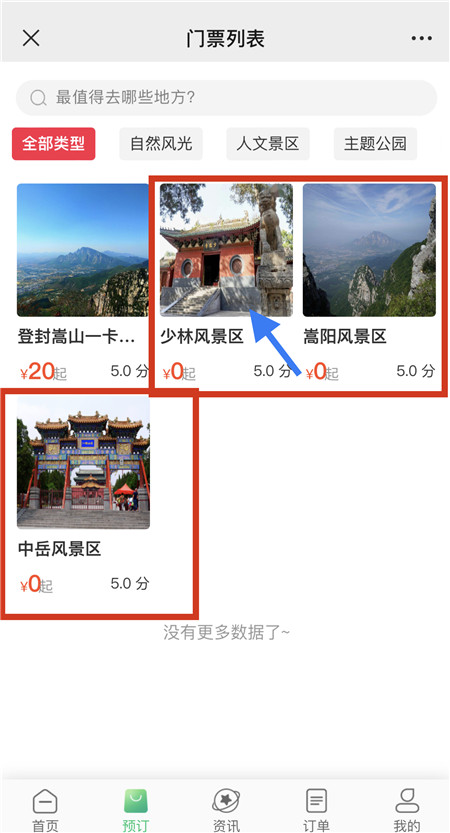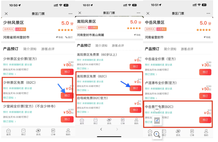 (4)進(jìn)入景區(qū)門票,找到門票售價為0元的即為預(yù)約門票,點擊預(yù)訂。