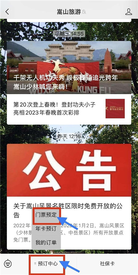 (1)微信搜索嵩山旅游公眾號,點擊進(jìn)入。