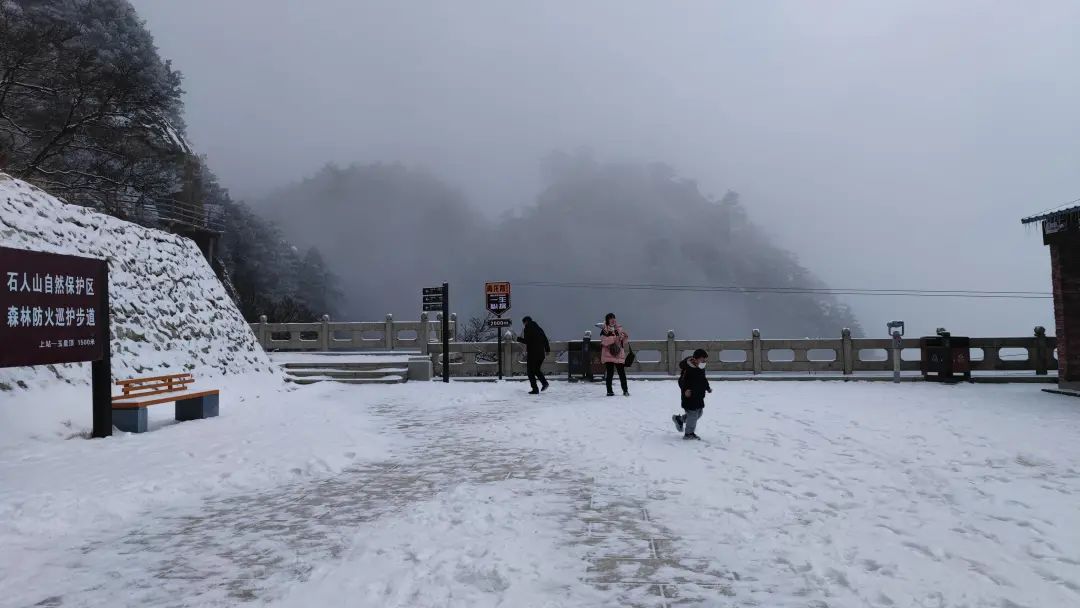 1月1日,堯山(石人山)景區(qū)迎來新年首場雪。記者1月2日上午在該景區(qū)看到,整個景區(qū)銀裝素裹,美不勝收。由于天氣寒冷,景區(qū)在降雪同時,還出現了美麗的雪淞景觀,加上周圍云霧繚繞,讓人流連忘返。