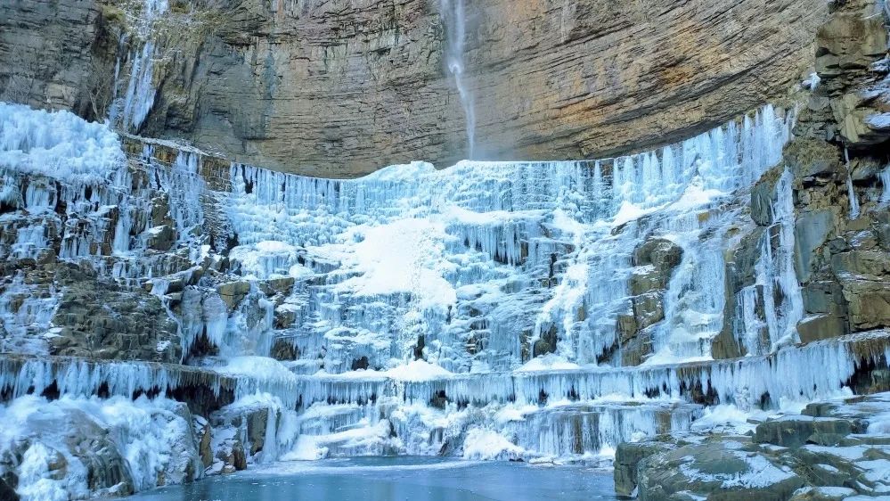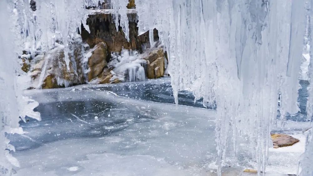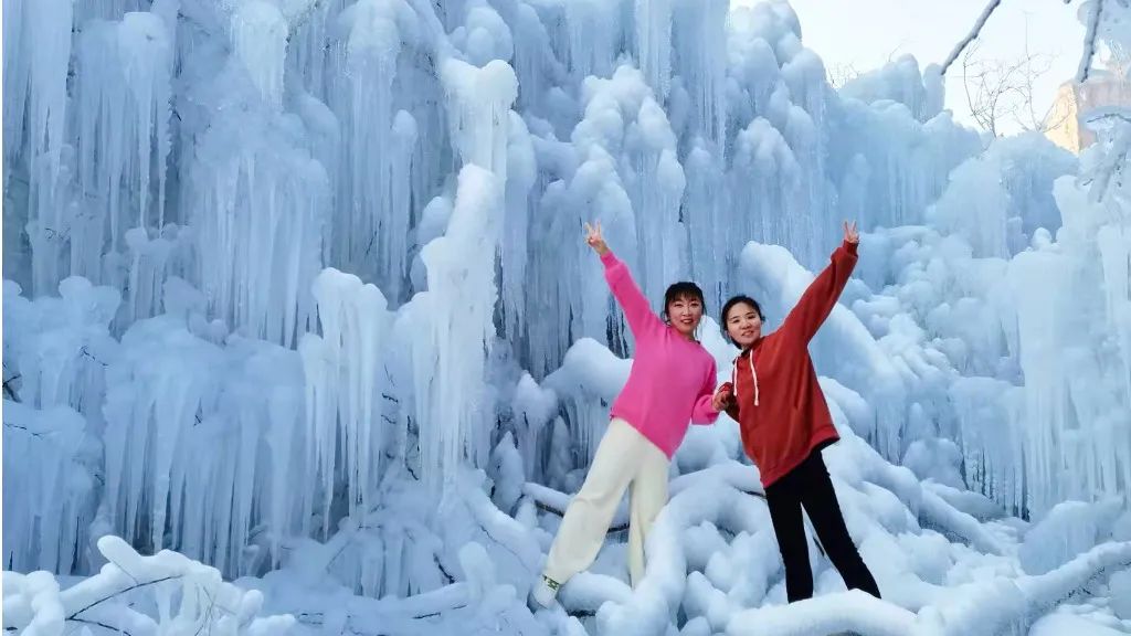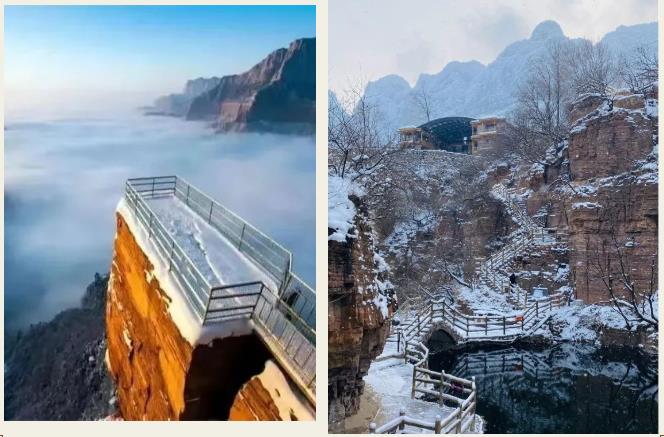 此時的新鄉(xiāng)南太行被冰雪覆蓋,時而有晶瑩剔透的冰掛圍繞,時而有驚艷朋友圈的霧凇美景。