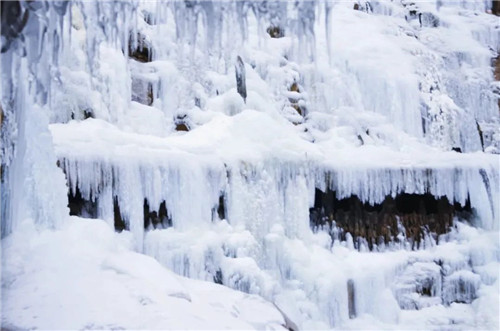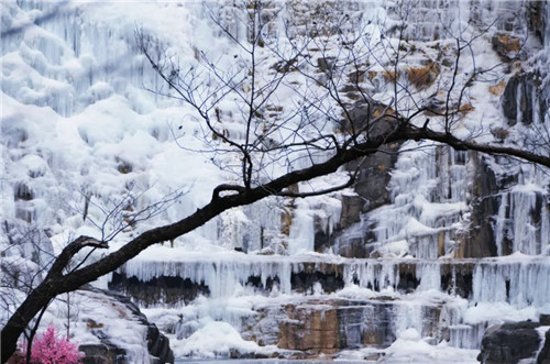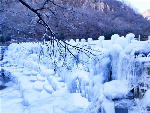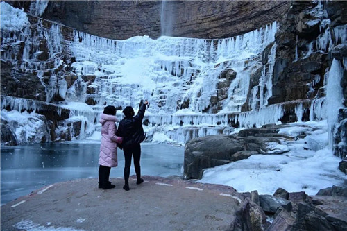 往日壯觀的天河瀑布,冬日凝固成高達百米的冰瀑,顯的更加雄偉,被譽為北方水世界的新鄉(xiāng)南太行,此刻變成了北方“冰”世界。