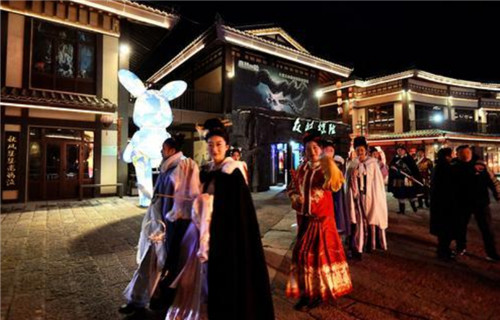 本次活動自農歷臘月二十四(1月15日)開始,持續(xù)至二月初二(2月21日);顒觾热菀员椴既珗@700畝的花燈夜游為主,包含大展宏“兔”、十二生肖、盛唐風華、奇幻森林等多個主題燈展。古鎮(zhèn)全園區(qū)全天候上演40余場傳統民俗和漢唐演藝,并于春節(jié)期間每天加演一場專題演出,古鎮(zhèn)的非遺百味街和煙火喜樂街,更是匯聚了100余家包含非遺、美食、文創(chuàng)的國潮市集。在古鎮(zhèn)的核心景點——映月湖,還將有神秘驚喜壓軸上演,敬請期待!