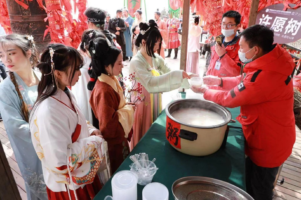 工作人員為游客發(fā)放愛心粥 吳艷紅 攝