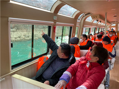 乘游船在湖光山色中穿梭,如畫的山水風光盡收眼底,暢游“北方三峽”的愜意,與濃濃年味相得益彰。