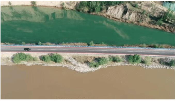 進(jìn)入東寨段,沿黃生態(tài)廊道把黃河從中隔開,形成半是橙黃半碧玉的獨(dú)特景象。渾厚的黃河與輕盈的碧湖相映成景,猶如一塊大自然的多彩“調(diào)色板”。