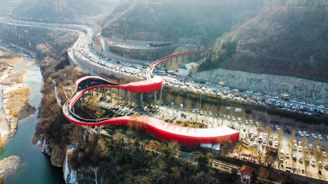 天朗氣清,晴空萬里,紅旗渠游人如潮,煙火氣依舊濃郁。
