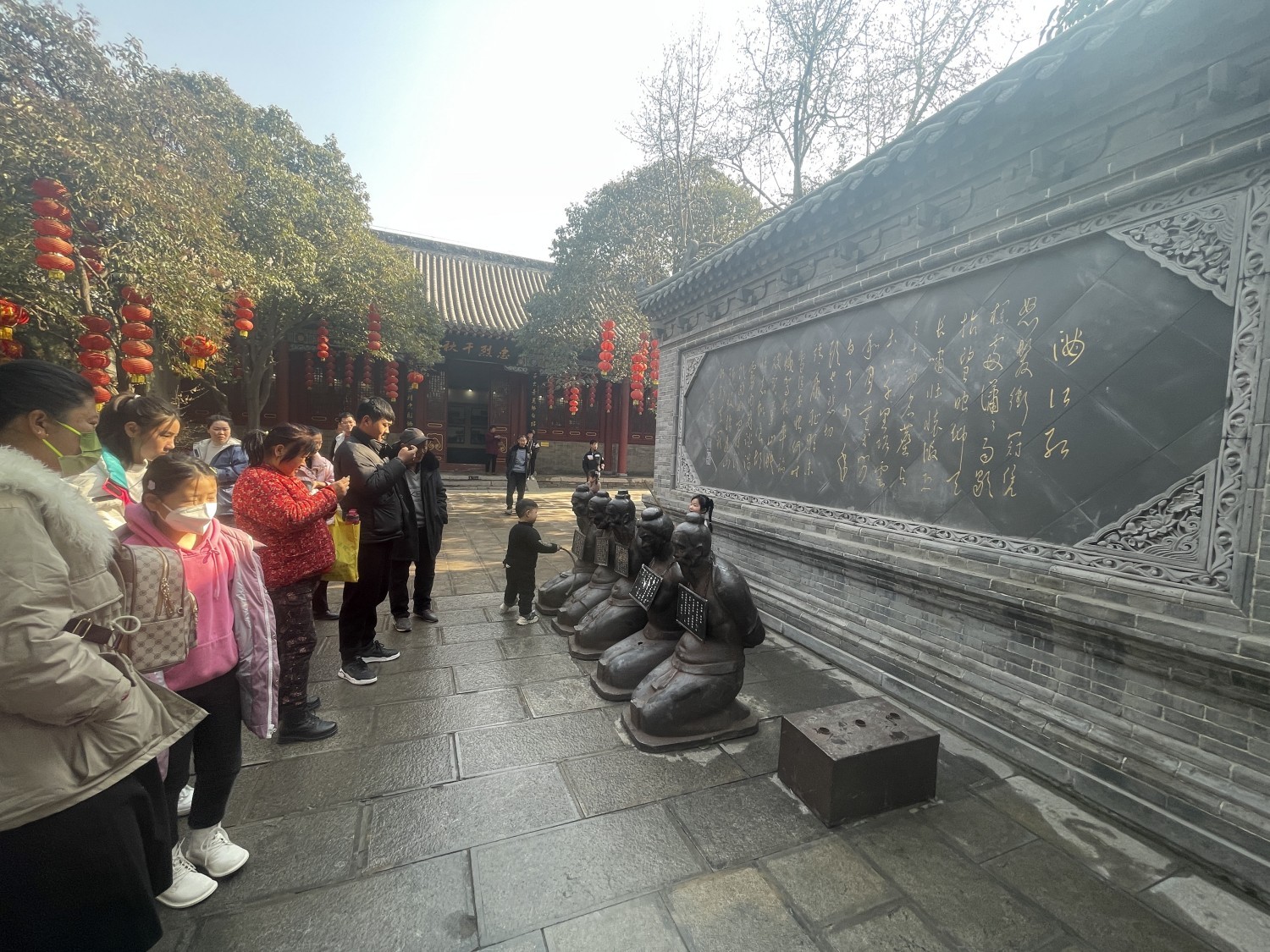 “第一次參觀朱仙鎮(zhèn)岳飛廟,就聽(tīng)到中學(xué)生在嚴(yán)寒中高聲朗誦《滿江紅》,令人心潮澎湃。”看完電影《滿江紅》后,專程來(lái)到朱仙鎮(zhèn)岳飛廟“打卡”的鄭州游客焦淵說(shuō)。