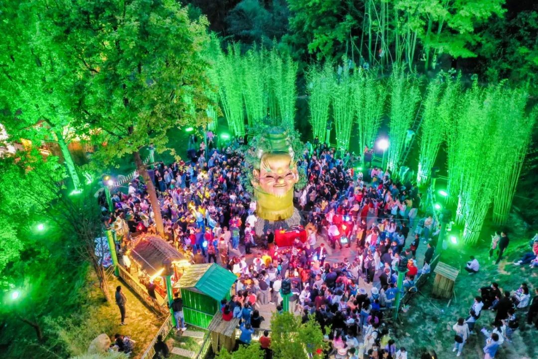 “燈影隨人動(dòng),人在畫中游”,流光溢彩映照的滿園璀璨,氛圍感拉滿!元宵節(jié)來信陽西九華山中原竹寨打卡!