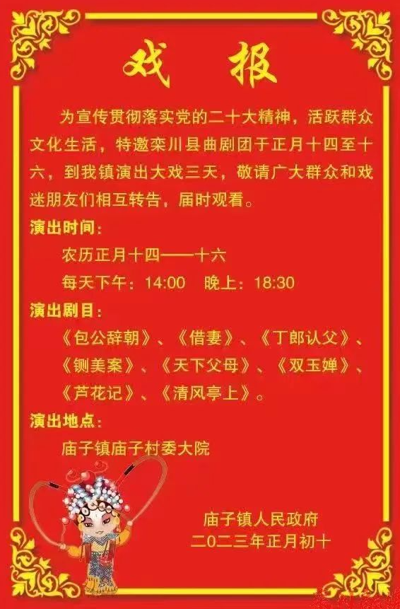 活動地址:廟子鎮(zhèn)廟子村文化廣場、上河村村委文化廣場、下廟社區(qū)、黃石砭村村委、磙子坪村委