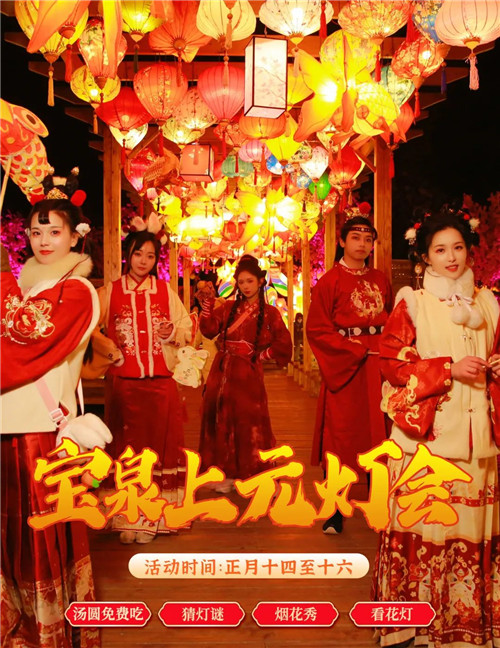 元宵節(jié)來寶泉看花燈,在多個場地中相遇不同的主題花燈矩陣,對詩吟誦,感受詩意寶泉,用一天的花燈璀璨,許你美好佳節(jié)。