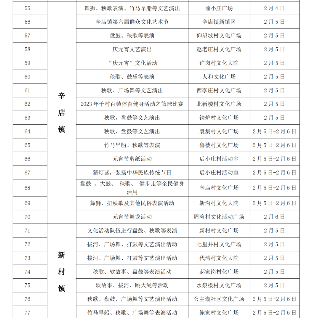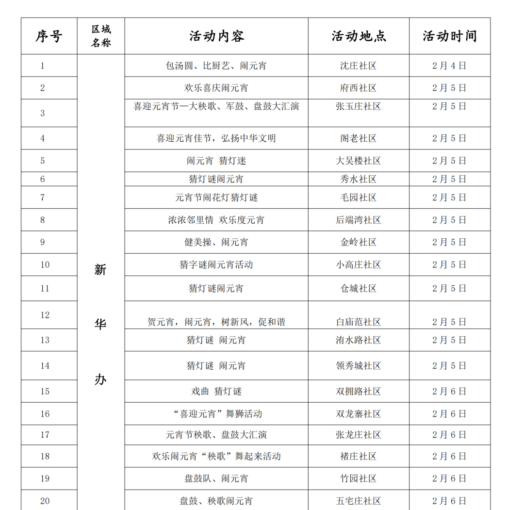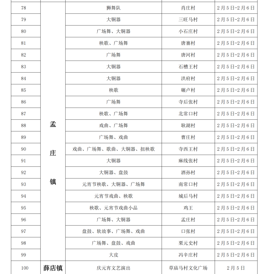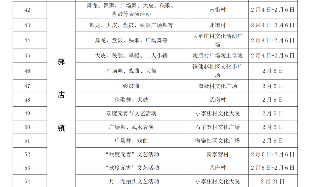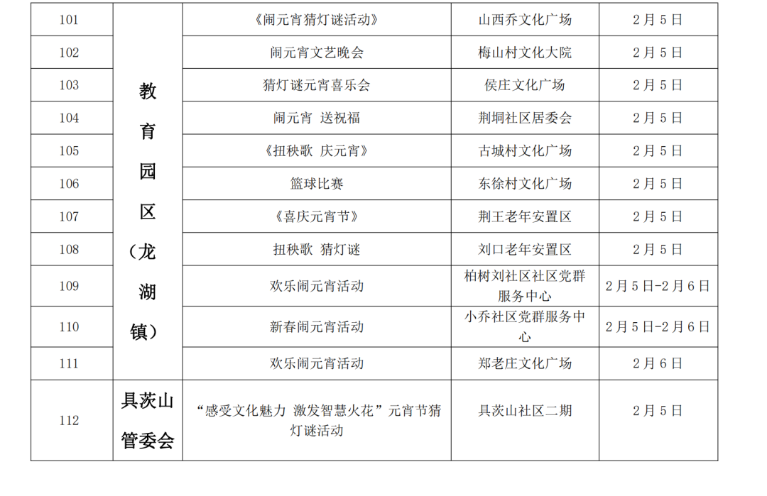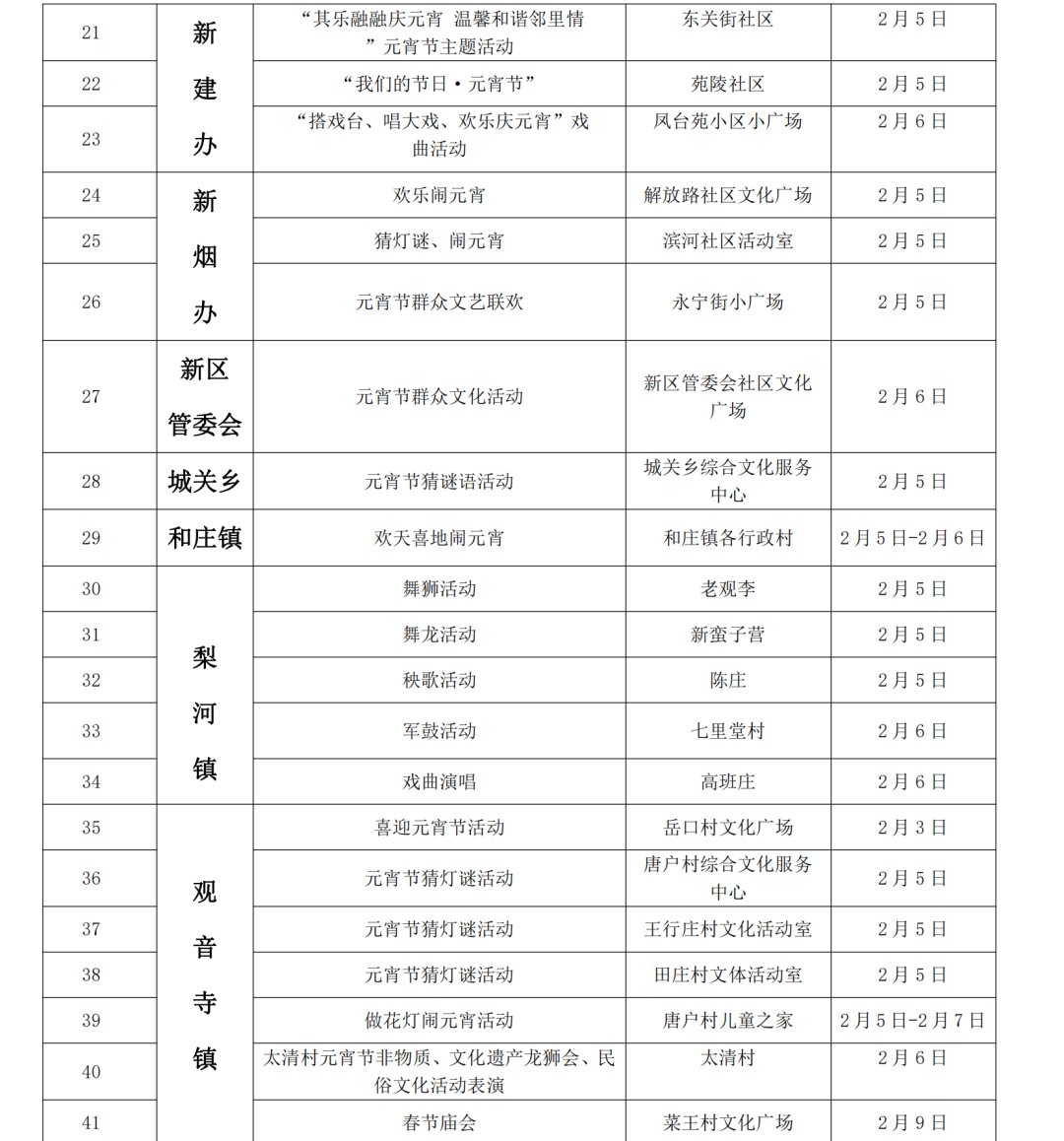新鄭市各鄉(xiāng)鎮(zhèn)(街道、管委會(huì))元宵節(jié)群眾文化活動(dòng)一覽表