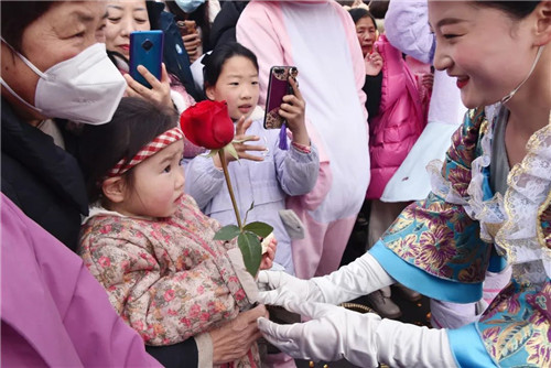 小姐姐們奮力表演,觀看的人們喜笑顏開,花車巡演吸引眾駐足觀看、拍照留念,現(xiàn)場洋溢著濃濃的節(jié)日氣息和歡樂祥和的快樂氛圍!