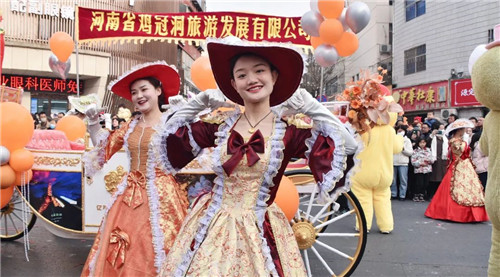玉兔納福踏春來,鑼鼓喧天鬧元宵。正月十六上午,雞冠洞景區(qū)“福兔迎祥”花車巡游在欒川縣城精彩亮相,獨特新穎且充斥異域風(fēng)情的展演,讓欒川居民在家門口享受欒川文旅界的視覺盛宴!