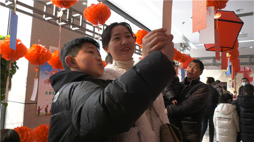 2023年2月4日,記者在郟縣博物館里看到,一串串花燈樣式的紅燈籠掛滿走廊,花燈下懸掛著“第一輪滿月”等六十余個與節(jié)日傳統(tǒng)習(xí)俗和歷史文化知識有關(guān)的謎語卡片,吸引了眾多游客前來參與,人們紛紛記下燈謎,根據(jù)線索和提示到博物館中去尋找答案。有的孩子還裝扮成“小福娃”,在工作人員的帶領(lǐng)下,賞花燈、觀文物、猜燈謎,感受傳統(tǒng)文化氛圍,度過了一個豐富別樣的元宵佳節(jié)。