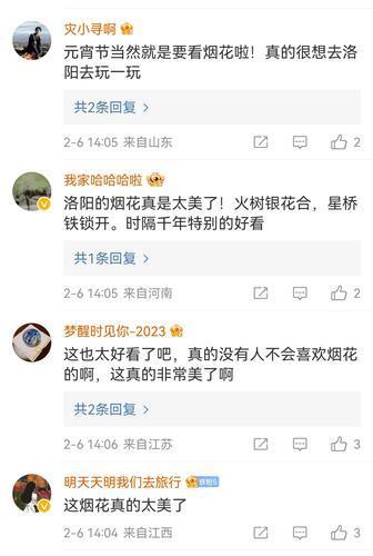 作為本地權(quán)威主流媒體,洛陽(yáng)日?qǐng)?bào)發(fā)起的微博話題#洛陽(yáng)請(qǐng)全網(wǎng)人民看煙花#、#洛陽(yáng)元宵煙花秀#累計(jì)閱讀量達(dá)1.3億人次。話題下,不少本地網(wǎng)友滿是自豪地向外地游客發(fā)出邀約——