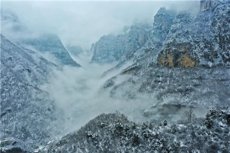 皚皚白雪 梳妝山野,先袂飄飄 好似仙境,銀裝素裹的山川,為新鄉(xiāng)南太行平添了一份愜意與溫柔。