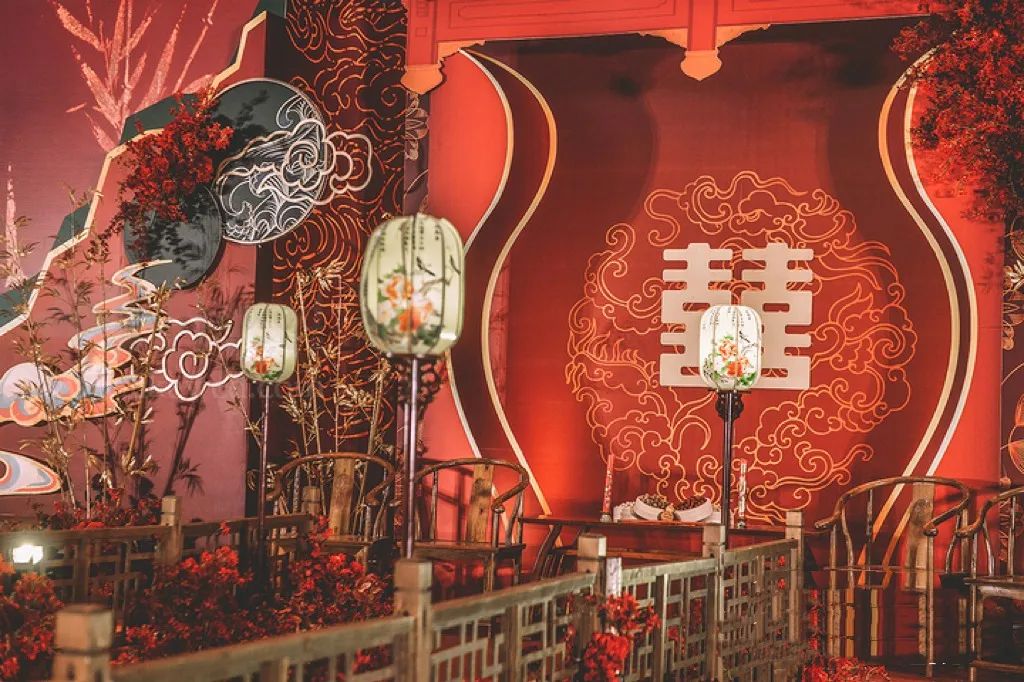 國(guó)風(fēng)婚禮的大氣磅礴,傳統(tǒng)色彩和元素,處處傳遞著吉祥與祝福。滿堂生輝的繁榮盛景,將“宜言飲酒,與子偕老。琴瑟在御,莫不靜好”的意境融入其中。
