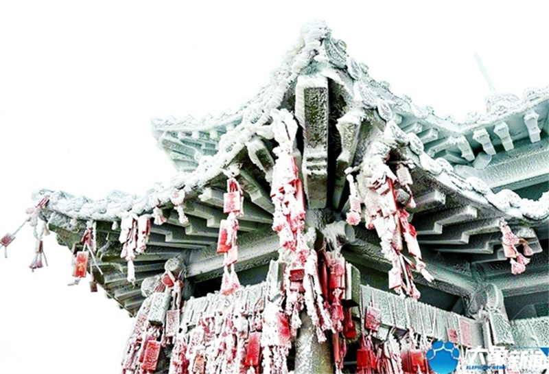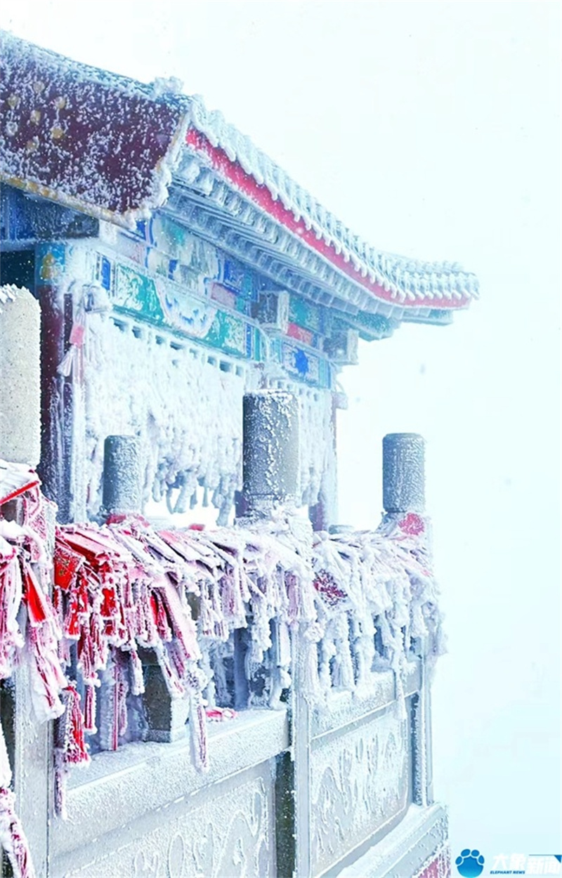 當(dāng)銀白色的純潔覆蓋了伏牛山巔裸露的蒼涼,一切都染上了雪色無垠的純白,那些碧瓦飛甍、雕梁畫棟之上,便展現(xiàn)出白雪鑲紅墻,碎碎墜瓊芳的極盡無華之美。