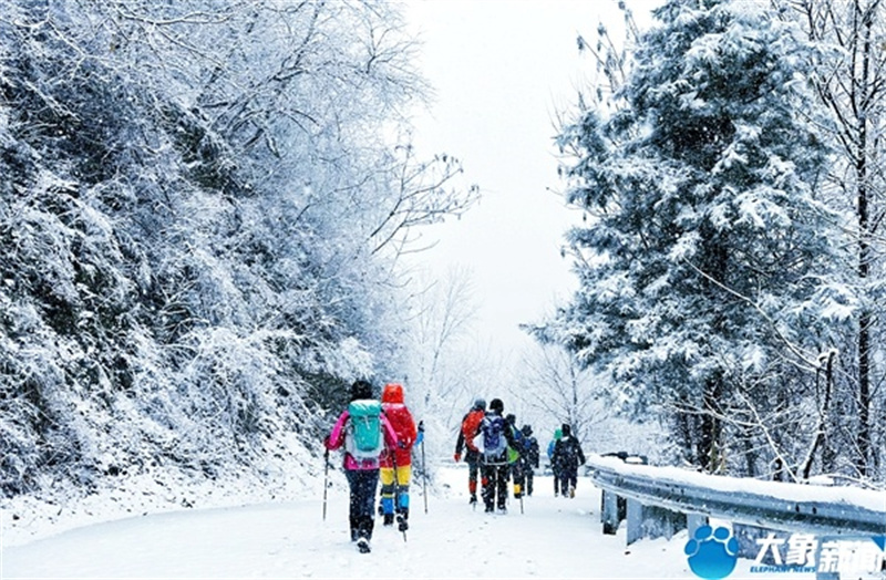 當(dāng)日,洛陽市民王鵬飛與幾名登山愛好者相約欒川,他們從老君山腳下沿著步行通道穿越伏牛山主峰。巍巍伏牛,如入仙境,當(dāng)他們攀上主峰時(shí),正趕上了一場(chǎng)難得的春雪。片片詩意,點(diǎn)點(diǎn)柔情,飛舞的雪花為群巒鋪上一層精致的白紗,用最清新的空氣,洗滌著人們的心靈肺腑。在冷空氣的陪伴下,還上演了霧凇美景,亭臺(tái)樓閣、灌木叢中凝霜掛雪,戴玉披銀,如朵朵白云,似排排雪浪。極目之處,雪樹銀花,如夢(mèng)如幻。