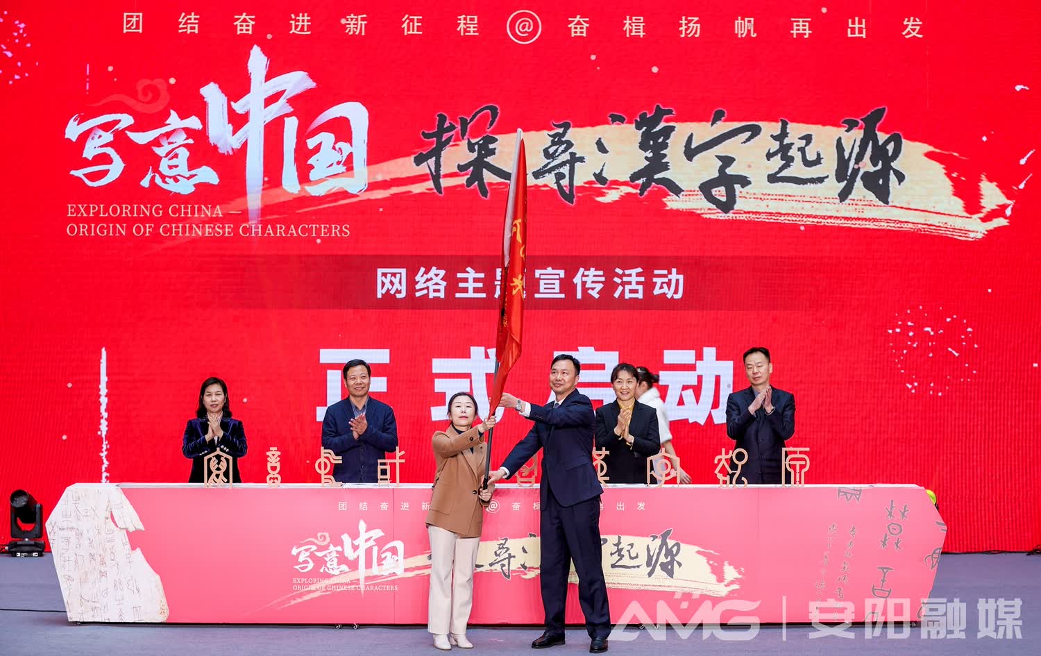 一片甲骨驚天下!尋訪漢字之源、品讀漢字之韻、鑒賞漢字之美、感悟漢字之魂……啟動(dòng)儀式現(xiàn)場(chǎng),精彩的1分鐘宣傳片,展示了中華文字的永恒魅力。據(jù)了解,河南將以“寫意中國(guó)——探尋漢字起源”網(wǎng)上主題宣傳活動(dòng)為契機(jī),探訪中華文明源頭,持續(xù)煥發(fā)文字永恒魅力,讓中原更加出彩的文化基因靚起來(lái),讓“行走河南·讀懂中國(guó)”品牌亮起來(lái)。