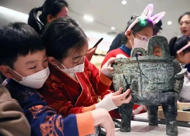 小朋友在中國(guó)文字博物館體驗(yàn)文物拼拼樂