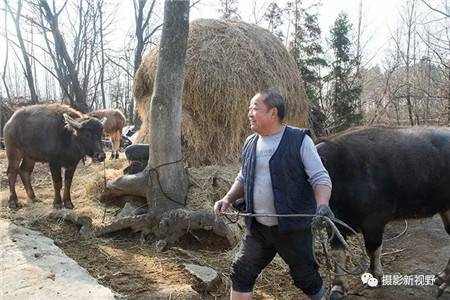 這位大伯很勤快,家里養(yǎng)了3頭水牛。