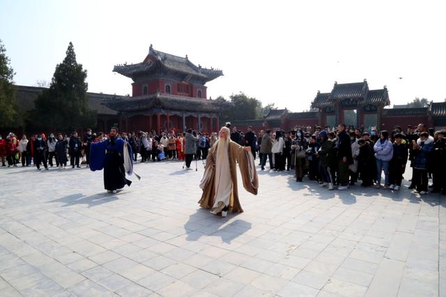民俗文化隊伍以巡演活動為契機,通過海選、復賽、半決賽、總決賽層層挖掘出當?shù)乇硌萑瞬,組織多支民間項目演出隊伍輪流在廣場、公園等地表演,巡演活動貫穿廟會始終,并與游客互動。