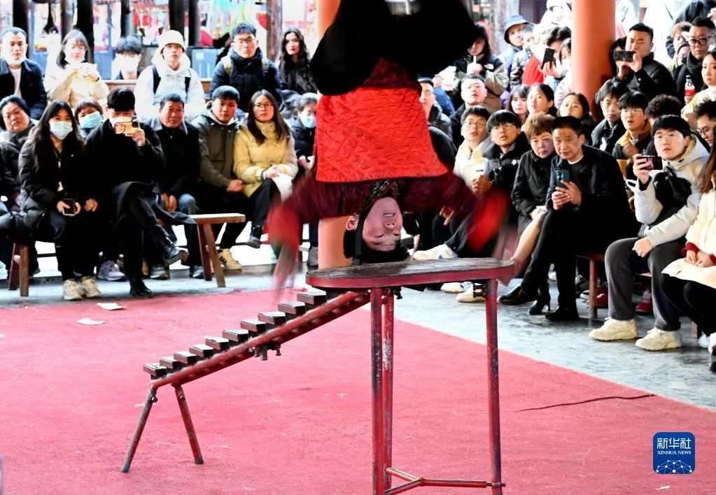2月18日,游客在開封清明上河園景區(qū)內(nèi)觀看民俗表演。