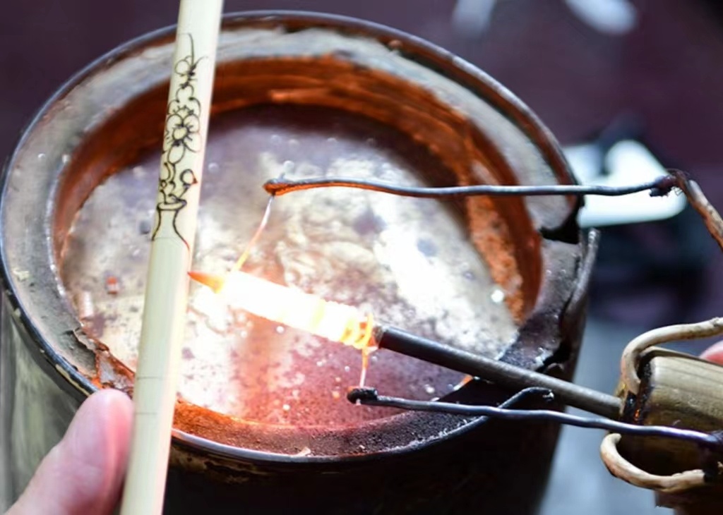 烙畫師傅在竹筷上進(jìn)行烙畫創(chuàng)作。陳輝 攝