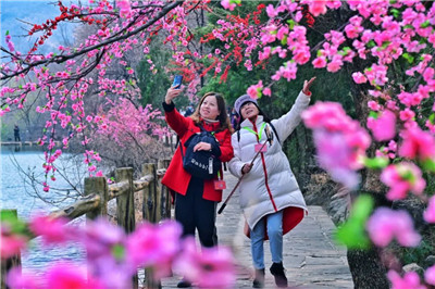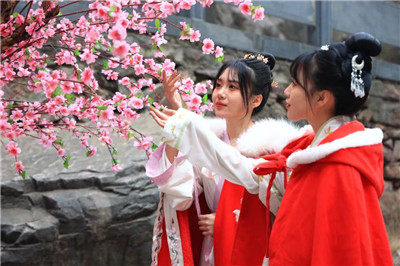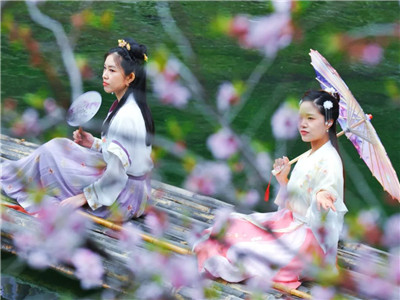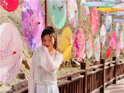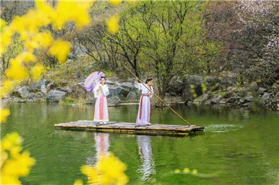 春日時節(jié),是踏青的時節(jié),許多女子也爭相出門游玩,穿上華麗的漢服,在輕盈的竹筏上,為新鄉(xiāng)南太行,添加了一份無與倫比的美。