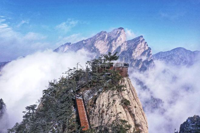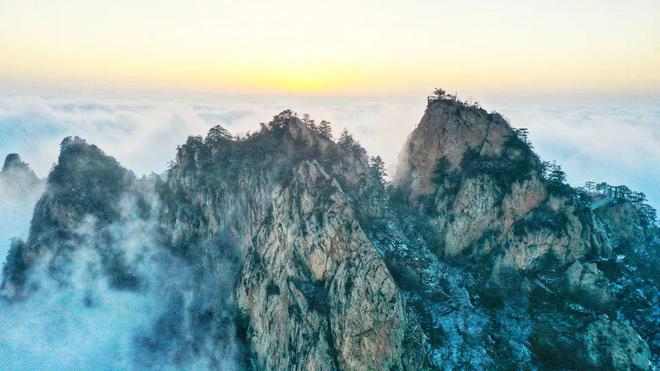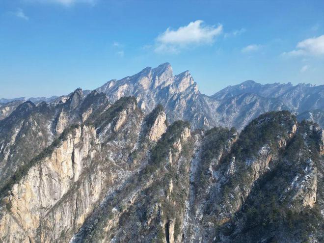 鋸齒峰,山巒參差,巖石裸露,棵棵古松立于峭壁巖縫之間,在春雪映襯下,姿態(tài)萬千!
