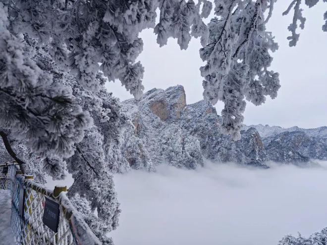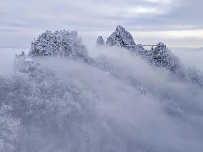 界分南北,層林盡白,縱覽南北方的迥異風(fēng)光,感受老界嶺獨特的冰雪霧凇世界!