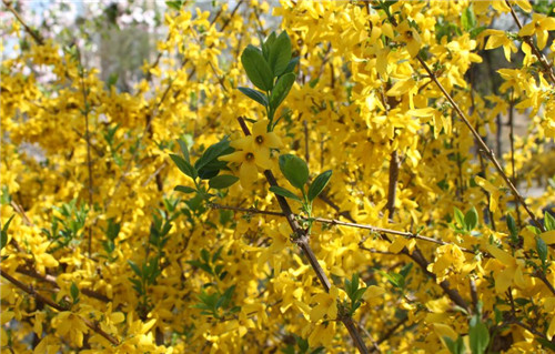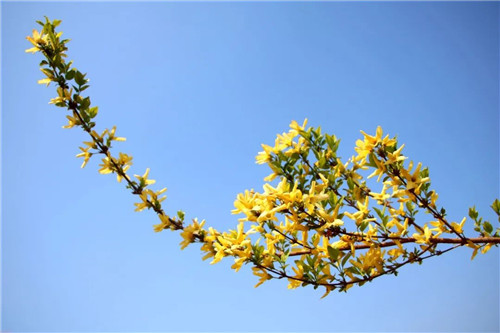 連翹花金光閃,朵朵小花逼人眼