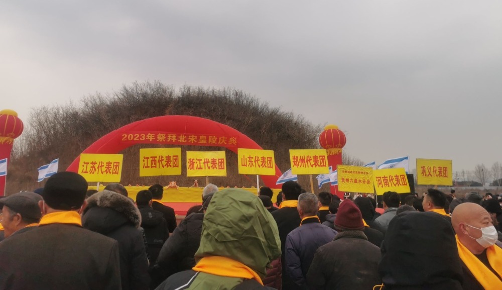 當(dāng)天上午位于鞏義市西村鎮(zhèn)的宋太祖永昌陵前旌旗招展、人頭攢動,來自全國各地趙氏宗親在此隆重舉行了2023年祭拜北宋皇陵慶典暨紀念宋太祖誕辰1096周年大會,尋根問祖,祭祀、緬懷趙氏先人。