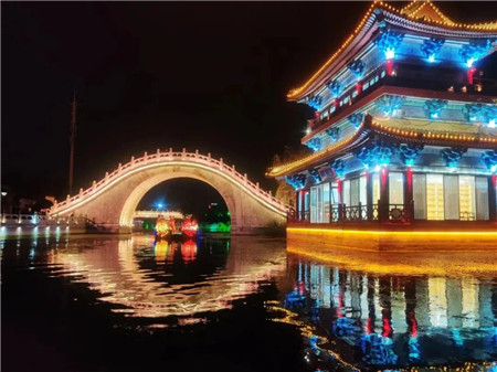 立春過后,天氣漸漸變得暖和了,漫步御河,燈光照耀,御河兩旁的夜景更是迷人。
