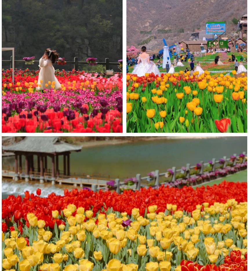 數(shù)萬株郁金香吹響了追逐春天的號角,各種顏色的郁金香都是,春天顏料盤中的的專用色,大片大片地交融,像極了莫奈筆下的油畫。