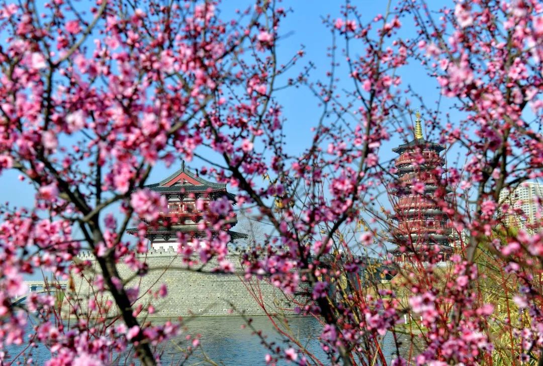 除了近距離賞花,您還可站在隋唐洛陽城遺址南城墻上,俯瞰春日美景。古色古香的城墻與不遠(yuǎn)處的現(xiàn)代建筑相互映襯,彰顯著古今輝映的洛城風(fēng)貌。
