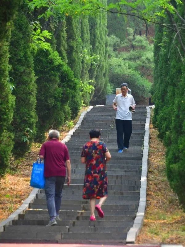 進(jìn)入周山森林公園,只見步道兩側(cè)的仿古景觀路燈古韻十足,燈箱上是關(guān)于洛陽、周文化的詩詞及典故。樂道將園內(nèi)的亭臺樓閣、浮雕墻、長廊、觀景平臺串成一串,移步換景,怡情養(yǎng)性。
