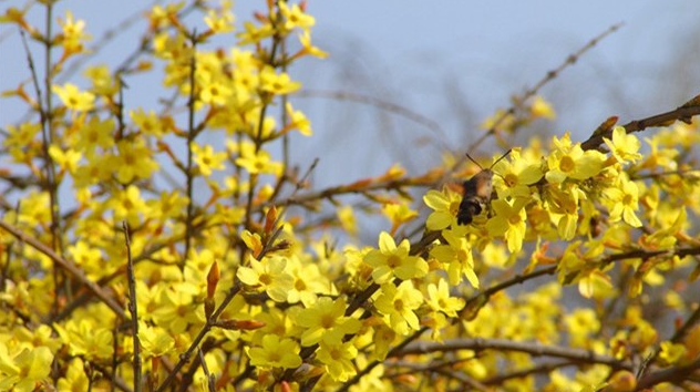 1、連翹 2月—3月中旬 景區(qū)星海湖岸邊及合歡林