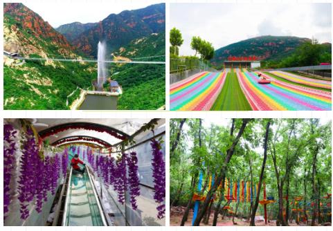 休閑路線推薦:景區(qū)東門---吊橋---仙人洞--美食廣場(chǎng)--水上闖關(guān)---紫藤長(zhǎng)廊--七彩滑道--飛云天橋--玻璃滑道--情人谷--熊孩子樂園(叢林穿越)---景區(qū)東門