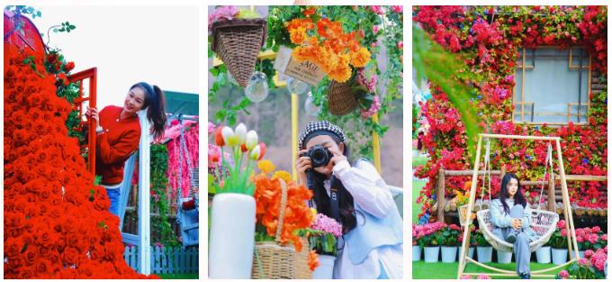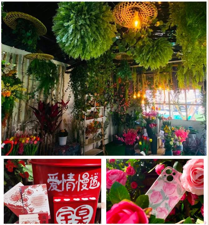 今年場地內(nèi)首增花海周邊文創(chuàng)店,郁金香手機(jī)殼、春日浪漫明信片,寶泉IP鹿小寶玩偶等卡通周邊,屋外每走兩步就是打卡拍照的地方,寶泉一束春天超大花束拿捏春日氛圍感。
