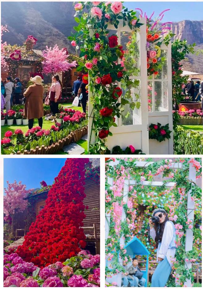 寶泉花海小院靜謐而夢幻,場地使用了大量的郁金香和繡球花點(diǎn)綴,搭配四大主題花屋和場景打卡道具,以及時(shí)下最熱門的玫瑰瀑布、玫瑰廊道,讓游客來了就愛上這里。