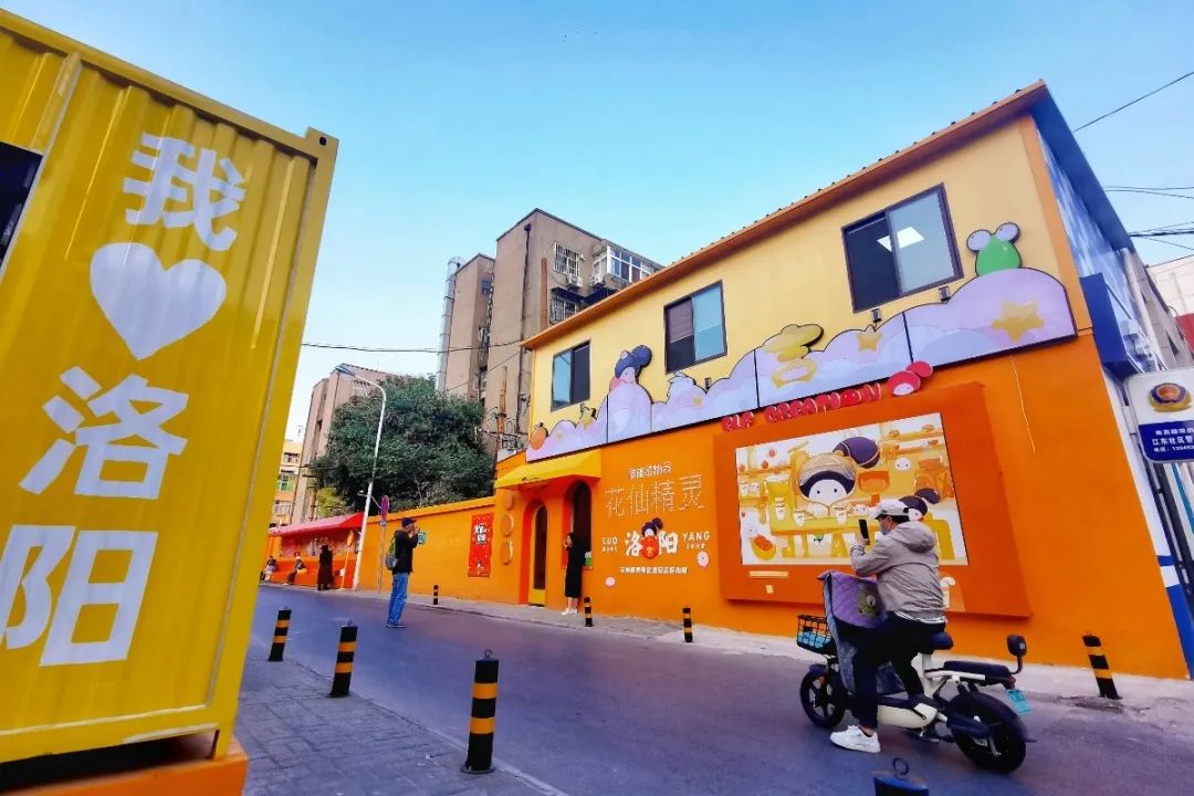 街區(qū)以“吉趣萬象”為主題,融入“洛陽城市IP—花仙精靈”形象,各種潮流、萌趣商鋪、文化藝術(shù)空間和涂鴉互動裝置,讓整條街氤氳著時(shí)尚而甜蜜的氣息。來這兒走一走,心情也會變好哦~
